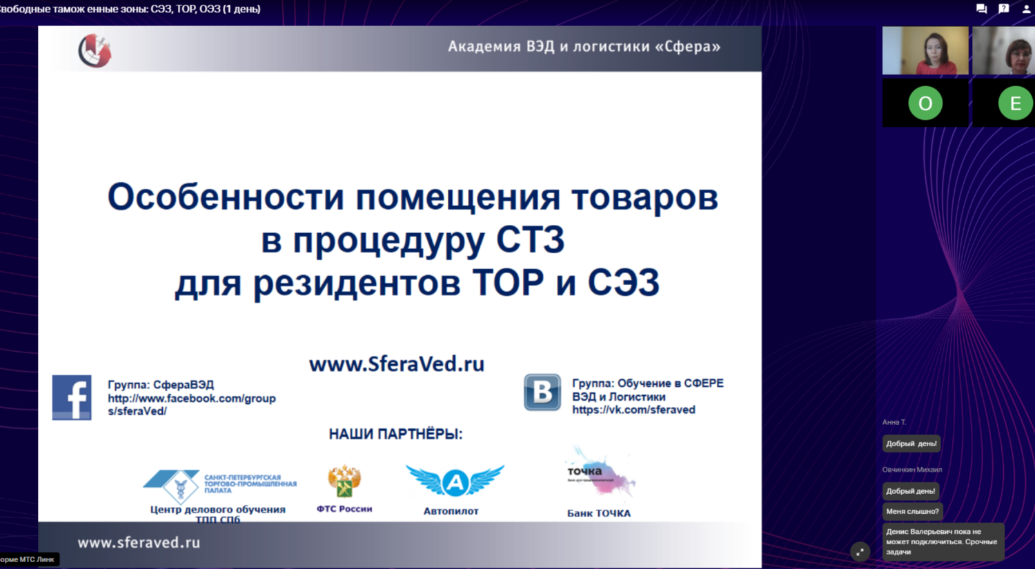 Санкт-Петербург, 18-19.12.2025 в Академии ВЭД и Логистики «Сфера» прошёл он-лайн вебинар «Особенности помещения товаров в процедуру СТЗ для резидентов ТОР, ОЭЗ, СЭЗ», собравший специалистов из компаний резидентов Свободных экономических зон.
