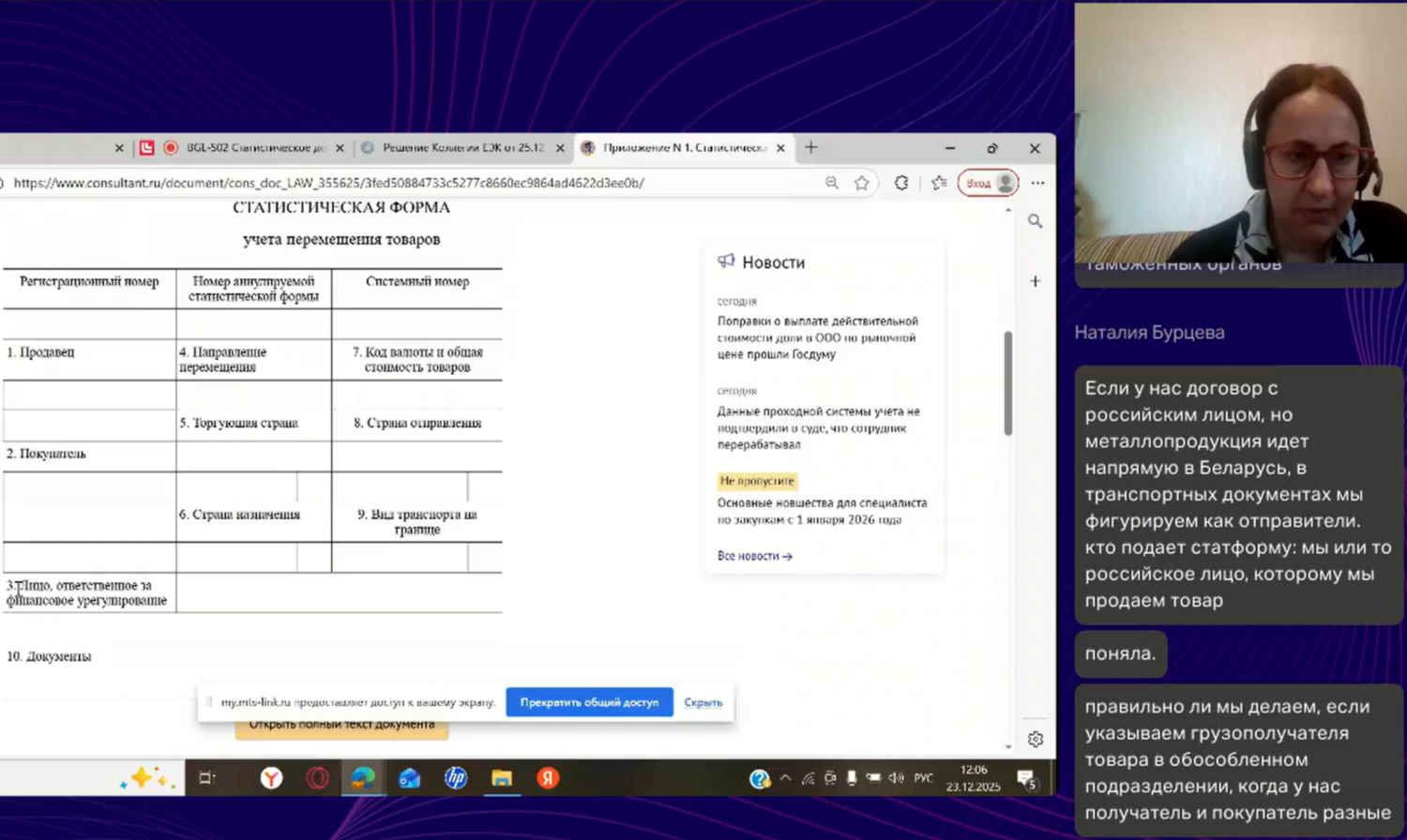 Санкт-Петербург, 23.12.2025 в Академии ВЭД и Логистики «Сфера» прошёл он-лайн вебинар «Статистическое декларирование в ЕАЭС», собравший специалистов из компаний работающих с Поставщиками и Контрагентами из стран Евразийского экономического союза (ЕАЭС).